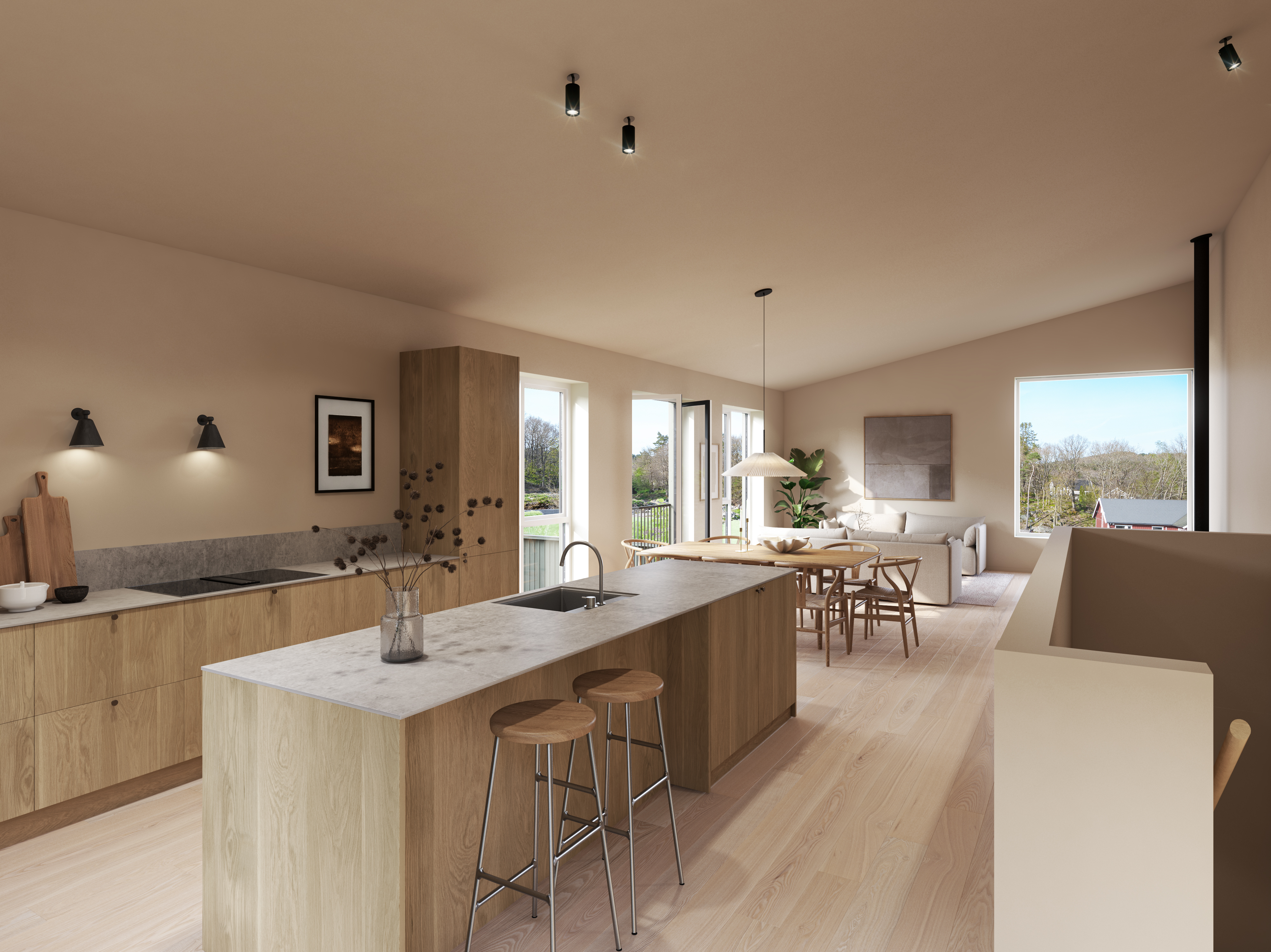 Boligens utforming gir deg stor fleksibilitet. Ønsker du TV-stue, praktikantdel eller kanskje takterrasse, har du gode muligheter til å tilpasse hjemmet etter egne behov og ønsker.